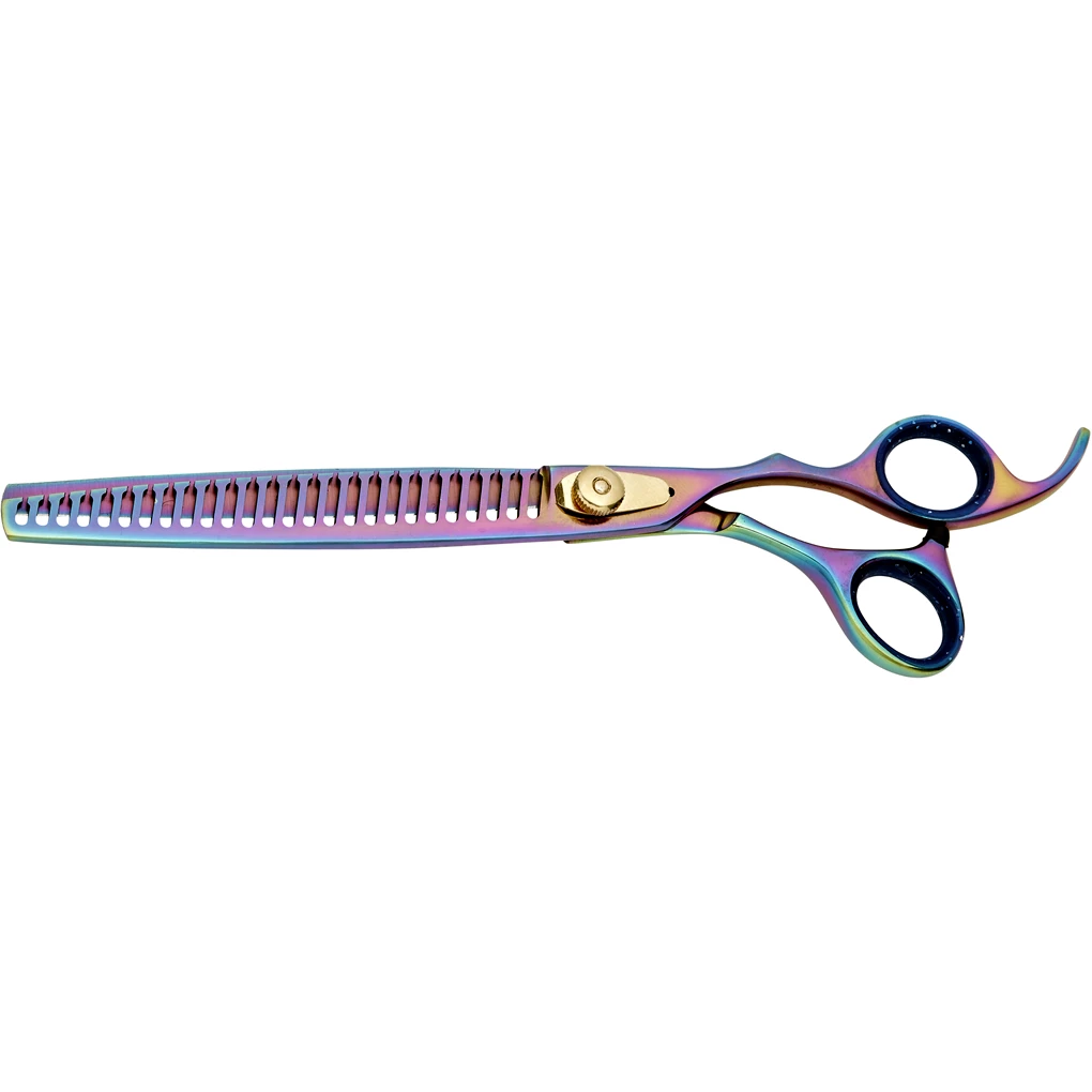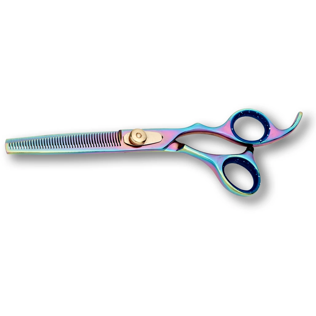 The Rainbow Shears are uniquely designed for comfort, with exceptional quality, performance and value, along with the ability to obtain and keep an excellent edge. Easily adjustable tension. Made in the USA. Adjustable tension screw. High quality stainless steel. Rockwell Hardness rating 57. These beautiful scissors of the best material, sharpening class, and performance characteristics.