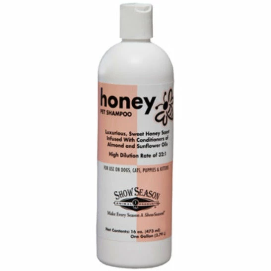 Show Season Honey Shampoo is the perfect all-purpose solution for your grooming needs. Its honey scent combined with sunflower and almond oil nourish the coat, while simultaneously cutting through dirt and grime without stripping natural oils. Enjoy the luxurious look and feel of freshly groomed fur!