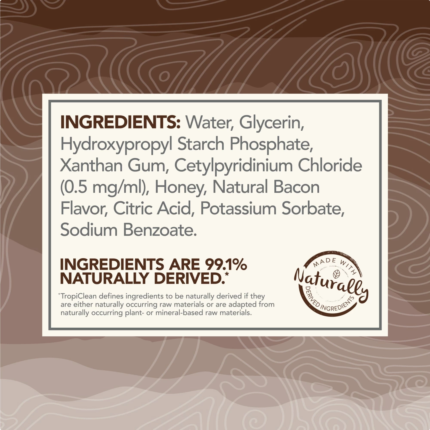Say hello to your dog’s new favorite delicacy. TropiClean Enticers Teeth Cleaning Gel is a savory oral care solution with a hickory smoked bacon flavor that will have your dog begging for clean teeth. Gel is made with naturally derived ingredients and proven to help eliminate 99.9% of the root cause of plaque and bad breath.